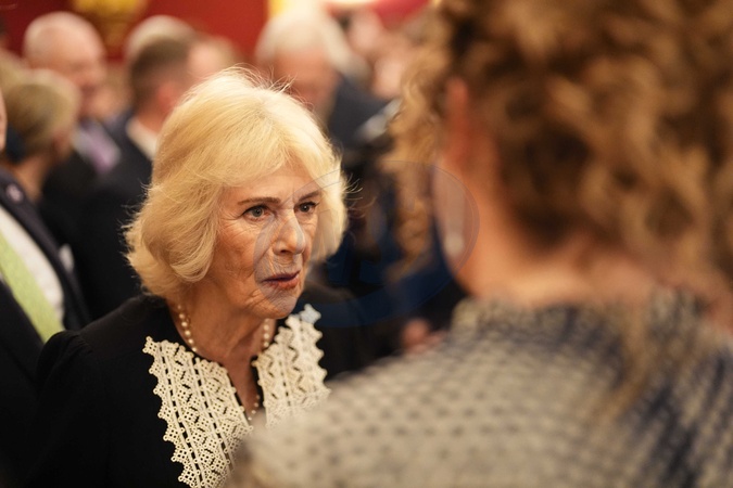 Queen Camilla speaking to guests during a reception at St James's Palace in London, to recognise the work of employees of local and regional governments who serve communities throughout the United Kingdom. Picture date: Tuesday February 3, 2026., Credit:Jordan Pettitt / Avalon