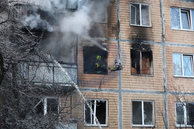 A SES firefighter works to put out a fire in an apartment of a five-story residential building following a Russian drone strike, Kharkiv, Ukraine, on February 3, 2026, Credit:Viacheslav Madiievskyi / Avalon