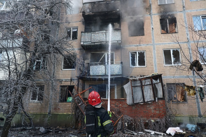 A SES firefighter works to put out a fire in an apartment of a five-story residential building following a Russian drone strike, Kharkiv, Ukraine, on February 3, 2026, Credit:Viacheslav Madiievskyi / Avalon
