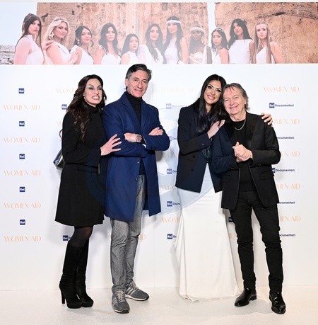 Rai Documentari presents Women Aid, featuring internationally renowned musicians from five continents who pay tribute to the strength of women in an inclusive and unique show. Pictured: project creator Valeria Altobelli with Red Canzian, Stefano Pantano, and Annalisa Minetti. Rome, Italy 03 Feb 2026, Credit:Maria Laura Antonelli / Avalon