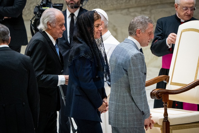 Lapo Elkann, with his wife Joana Lemos and João Mascarenhas de Lemos meet Pope Leo XIV during the Wednesday General Audience in Paul VI Audience Hall in Vatican City, Vatican, on 04 February 2026., Credit:Stefano Costantino TTL / Avalon