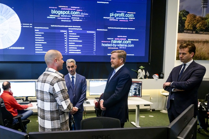 The King and the Minister of Economic Affairs visit the KPN Network and Security Operations Center in the context of resilient telecommunications, Hilversum, The Netherlands