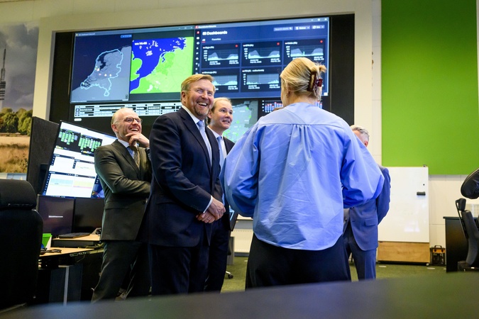 The King and the Minister of Economic Affairs visit the KPN Network and Security Operations Center in the context of resilient telecommunications, Hilversum, The Netherlands