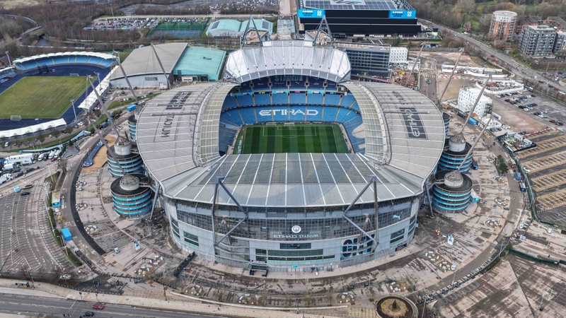 An aerial view of The Etihad Stadium during the Carabao Cup Semi-Final second leg match Manchester City vs Newcastle United at Etihad Stadium, Manchester, United Kingdom, 4th February 2026, Credit:Mark Cosgrove/News Images / Avalon