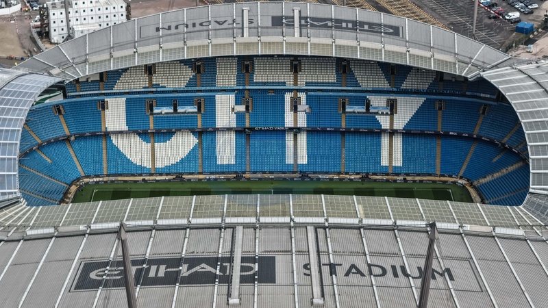 An aerial view of The Etihad Stadium roof during the Carabao Cup Semi-Final second leg match Manchester City vs Newcastle United at Etihad Stadium, Manchester, United Kingdom, 4th February 2026, Credit:Mark Cosgrove/News Images / Avalon