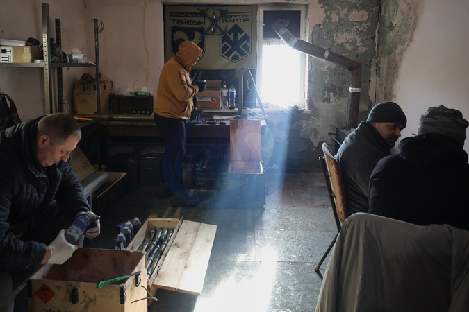 Fighters of the engineering and sapper group of the Typhoon special-purpose unmanned systems detachment of the National Guard of Ukraine upgrade munitions for drone operators at an engineering laboratory, Ukraine, on February 3, 2026, Credit:Viacheslav Madiievskyi / Avalon