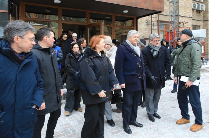 First Deputy Minister for Development of Communities and Territories of Ukraine Alona Shkrum, Minister Delegate to France's Minister for Europe and Foreign Affairs for Foreign Trade and Attractiveness Nicolas Forissier and Ambassador Extraordinary and Plenipotentiary of the French Republic to Ukraine Gael Veyssiere (L to R, middle) participate in the handover of the first 30 generators from the Crisis and Support Centre of the French Ministry for Europe and Foreign Affairs to the Kyivteploenerho Communal Enterprise, a heating and electricity provider supplying centralized heating and hot water to residents and businesses of Kyiv, under the EU Civil Protection Mechanism, Kyiv, Ukraine, February 4, 2026., Credit:Volodymyr Tarasov / Avalon