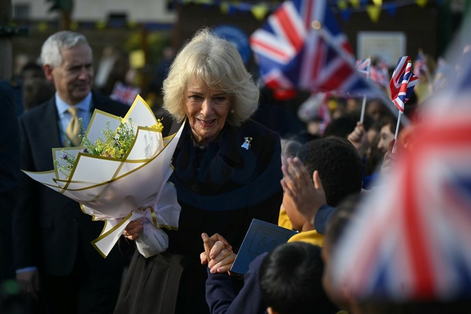 Britain's Queen Camilla departs after attending the opening of a library at Christ Church Primary School in London on February 4, 2026, to help mark the "National Year of Reading" and meet with pupil librarians., Credit:JUSTIN TALLIS / Avalon