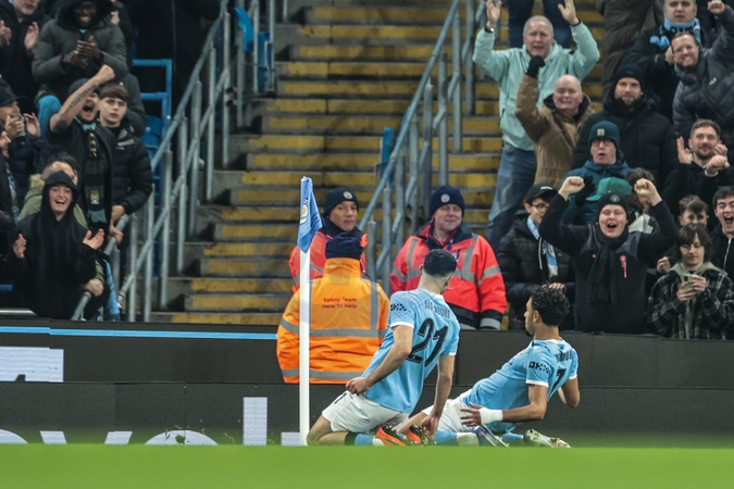 Omar Marmoush of Manchester City celebrates his goal to make it 1-0 during the Carabao Cup Semi-Final second leg match Manchester City vs Newcastle United at Etihad Stadium, Manchester, United Kingdom, 4th February 2026, Credit:Mark Cosgrove/News Images / Avalon