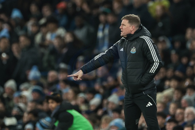 Eddie Howe manager of Newcastle United gives his team instructions during the Carabao Cup Semi-Final second leg match Manchester City vs Newcastle United at Etihad Stadium, Manchester, United Kingdom, 4th February 2026, Credit:Mark Cosgrove/News Images / Avalon