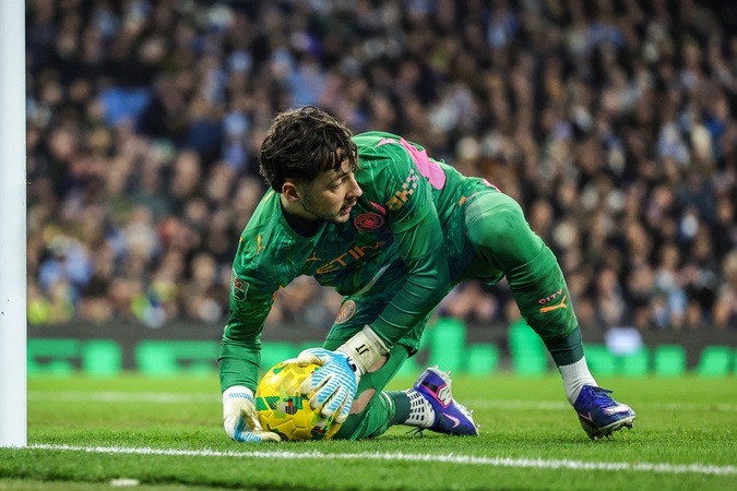 Manchester City goalkeeper James Trafford collects the ball during the Carabao Cup Semi-Final second leg match Manchester City vs Newcastle United at Etihad Stadium, Manchester, United Kingdom, 4th February 2026, Credit:Mark Cosgrove/News Images / Avalon