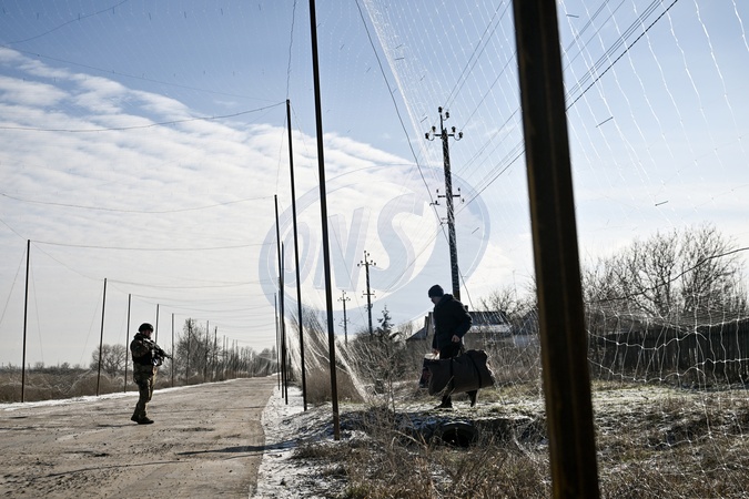 A man carries bags towards a road, shielded by an anti-drone net against Russian FPV drones, during the evacuation from front-line Tavriiske village, Zaporizhzhia region, Ukraine, February 3, 2026., Credit:Dmytro Smolienko / Avalon