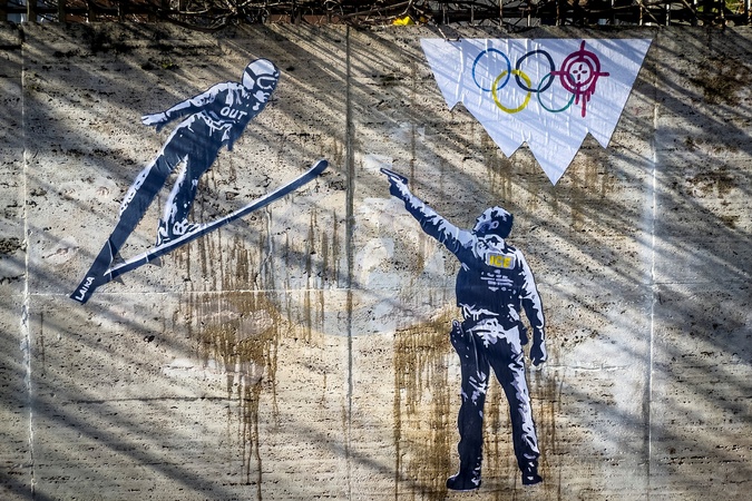 New mural by street artist LAIKA "Ice Out” is a denunciation of the presence of the American federal agency at the Milan-Cortina Olympic Games, Rome, February 5th 2026, Credit:Alessandro Serrano' / Avalon