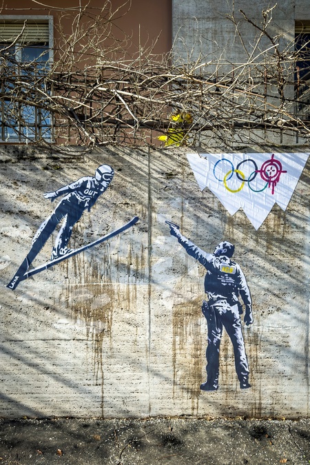 New mural by street artist LAIKA “Ice Out” , against the presence of ICE at the Milano-Cortina Olympic Games