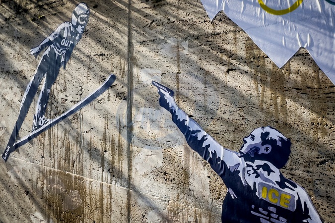 New mural by street artist LAIKA "Ice Out” is a denunciation of the presence of the American federal agency at the Milan-Cortina Olympic Games, Rome, February 5th 2026, Credit:Alessandro Serrano' / Avalon