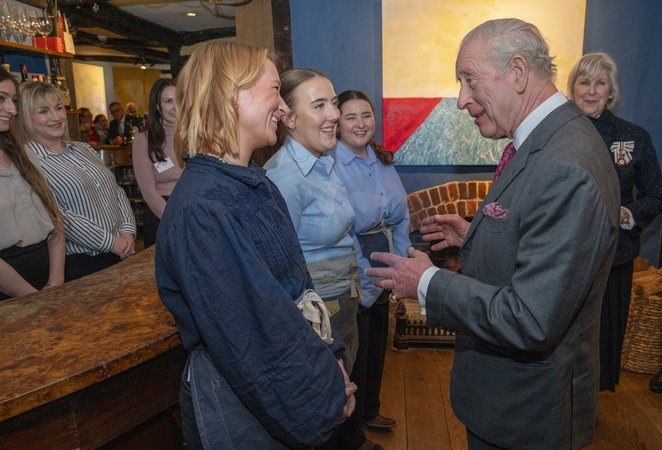 Their Majesties The King and Queen met local community heroes at The Sun Inn, Dedham, Essex, later the royal couple visited a tea party at the Essex Rose Teahouse. High Street,.Dedham, Colchester CO7 6DF..The Sun Inn Dedham, a characterful 15th-century inn, has been consistently named one of.the best pubs in the United Kingdom The King meets bar staff at the Sun Inn, Credit:Arthur Edwards / Avalon