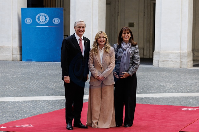 The Prime Minister receives the President-elect of the Republic of Chile. Pictured are Prime Minister Giorgia Meloni, President-elect Jose Antonio Kast, and his wife María Pía Adriasola. Rome, Italy 05 Feb 2026, Credit:Francesco Fotia / Avalon