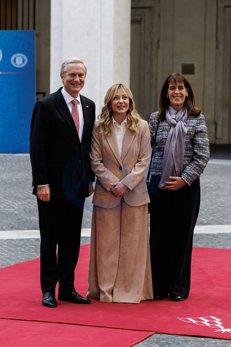 The Prime Minister receives the President-elect of the Republic of Chile. Pictured are Prime Minister Giorgia Meloni, President-elect Jose Antonio Kast, and his wife María Pía Adriasola. Rome, Italy 05 Feb 2026, Credit:Francesco Fotia / Avalon