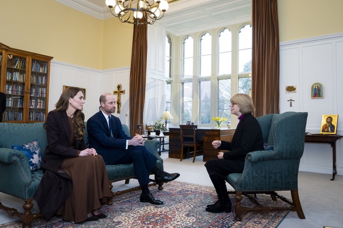 The Prince and Princess of Wales meet with the Archbishop of Canterbury Dame Sarah Mullally during an audience in the Archbishop's study at Lambeth Palace, London. Picture date: Thursday February 5, 2026., Credit:Aaron Chown / Avalon