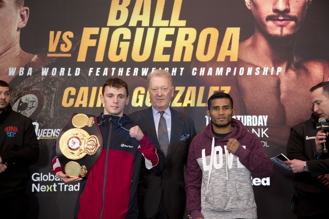 Jack Turner, Frank Warren and Juan Carlos Martinez Urbina at the Nick Ball vs Brandon Figueroa press conference at Boxpark, Brewery Village, Beaufort Street, Liverpool, UK, 05 February 2026. Editorial Use Only, Credit:Avalon