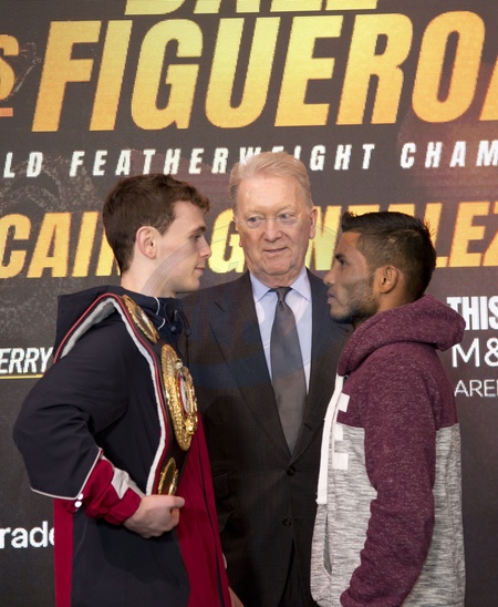 Jack Turner, Frank Warren and Juan Carlos Martinez Urbina at the Nick Ball vs Brandon Figueroa press conference at Boxpark, Brewery Village, Beaufort Street, Liverpool, UK, 05 February 2026. Editorial Use Only, Credit:Avalon