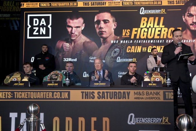 Jack Turner, Andrew Cain, Frank Warren and Nick Ball at the Nick Ball vs Brandon Figueroa press conference at Boxpark, Brewery Village, Beaufort Street, Liverpool, UK, 05 February 2026. Editorial Use Only, Credit:Dean Fardell / Avalon