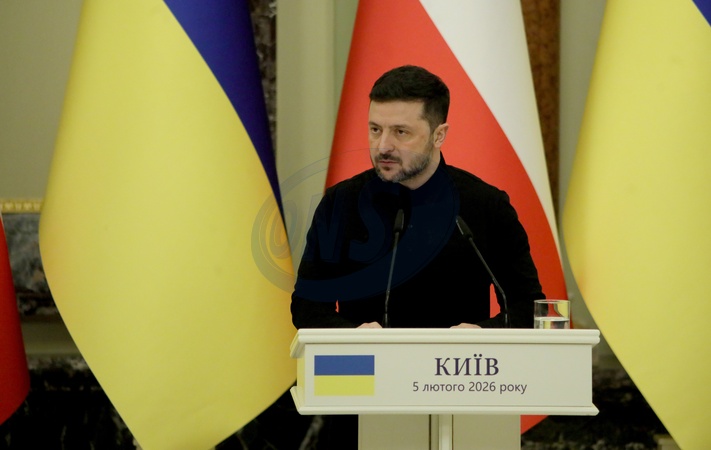 President of Ukraine Volodymyr Zelenskyy attends a joint press conference with Prime Minister of the Republic of Poland Donald Tusk at the conclusion of their meeting in Kyiv, Ukraine, on February 5, 2026, Credit:Yuliia Ovsiannikova / Avalon