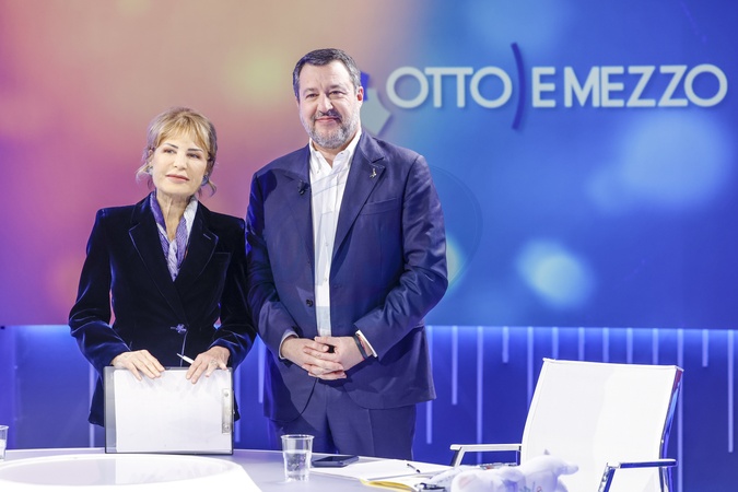 La7, television broadcast Otto e Mezzo, in the photo Lilli Gruber with Matteo Salvini, Vice President of the Council of Ministers of the Italian Republic and Minister of Infrastructure and Transport . Rome, Italy 05 Feb 2026, Credit:Cristiano Minichiello / Avalon