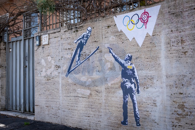"Ice Out!" is the new mural by street artist LAIKA: a denunciation of the presence of the American anti-immigration agency at the Olympic Games in Milan-Cortina, Rome, Italy, on 06 February 2026.