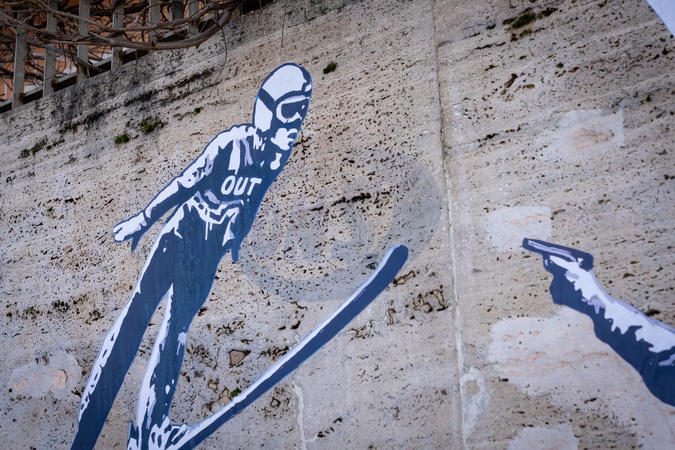 "Ice Out!" is the new mural by street artist LAIKA: a denunciation of the presence of the American anti-immigration agency at the Olympic Games in Milan-Cortina, Rome, Italy, on 06 February 2026.