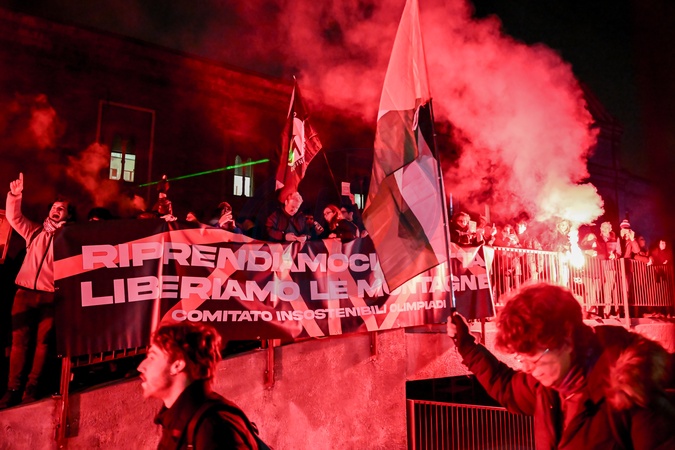 The Olympic flame's city route and ProPal protests. Mila, Italy 05 Feb 2026, Credit:AGF/Nicola Marfisi / Avalon