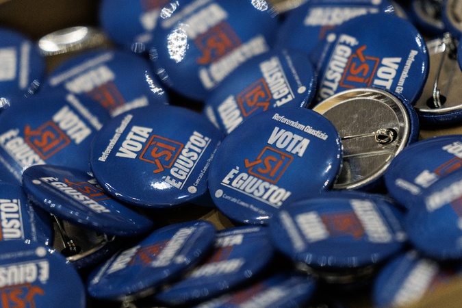 Event, The Transversality of the Yes, Inauguration of the judicial year of Italian criminal lawyers in the photo pins for the Yes to the referendum . Rome, Italy 06 Feb 2026, Credit:Francesco Fotia / Avalon