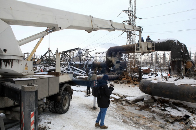 Reporters get familiar with the consequences of a Russian ballistic missile attack on Kyiv CHPP-4, Kyiv, Ukraine, February 6, 2026. On the night of February 2–3, Russian forces struck the heating system of Kyiv CHPP-4 (Darnytska CHPP) with five ballistic missiles, causing critical damage and forcing its shutdown. As a result, 1,129 residential buildings in Dniprovskyi and part of Darnytskyi districts, along with 46 schools, 72 kindergartens, 18 medical institutions, and other social and urban infrastructure facilities, were left without heating and hot water amid temperatures of –25°C., Credit:Volodymyr Tarasov / Avalon