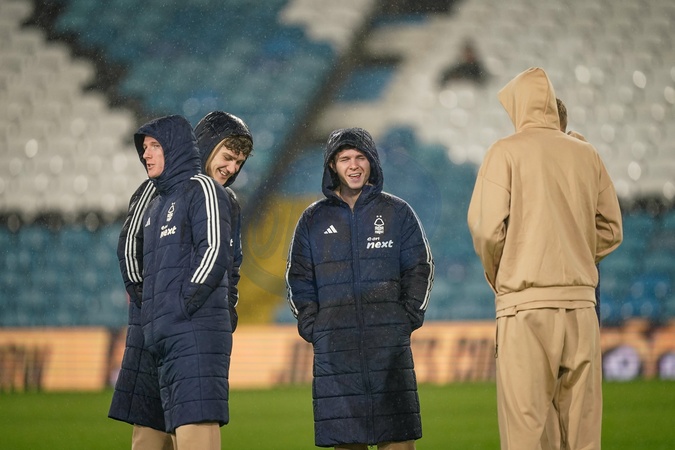 Nottingham Forest players led by James McAtee of Nottingham Forest during the Premier League match Leeds United vs Nottingham Forest at Elland Road, Leeds, United Kingdom on 06 February 2026, Credit:Maynard Manyowa/News Images / Avalon