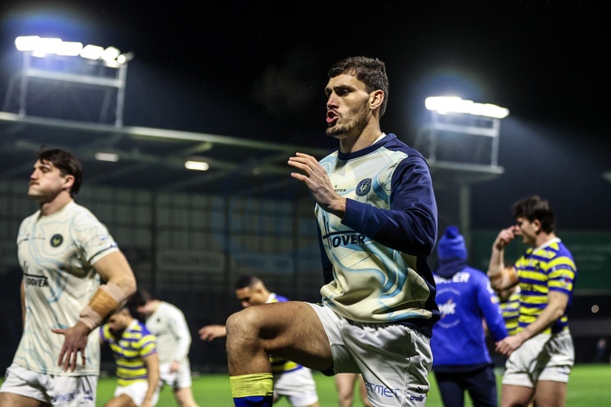 Sam Stone of Warrington Wolves in the pre-game warm up during the Betfred Challenge Cup match Warrington Wolves vs Sheffield Eagles at The Halliwell Jones Stadium, Warrington, United Kingdom on 06 February 2026, Credit:Ae Cosgrove/News Images / Avalon
