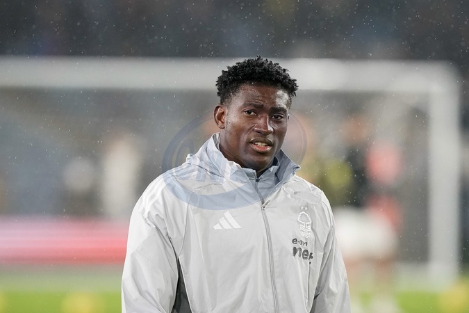 Taiwo Awoniyi of Nottingham Forest in the pregame warmup session during the Premier League match Leeds United vs Nottingham Forest at Elland Road, Leeds, United Kingdom on 06 February 2026, Credit:Maynard Manyowa/News Images / Avalon