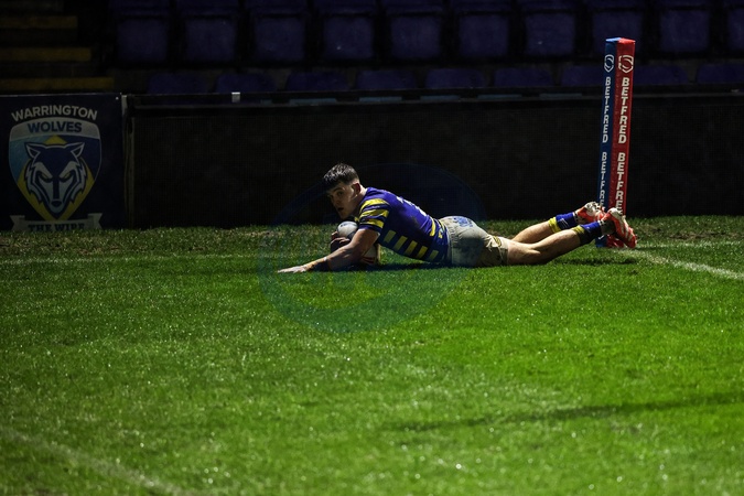 Josh Thewlis of Warrington Wolves goes over for a try during the Betfred Challenge Cup match Warrington Wolves vs Sheffield Eagles at The Halliwell Jones Stadium, Warrington, United Kingdom on 06 February 2026, Credit:Ae Cosgrove/News Images / Avalon