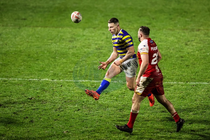 George Williams of Warrington Wolves kicks the ball up field during the Betfred Challenge Cup match Warrington Wolves vs Sheffield Eagles at The Halliwell Jones Stadium, Warrington, United Kingdom on 06 February 2026, Credit:Ae Cosgrove/News Images / Avalon