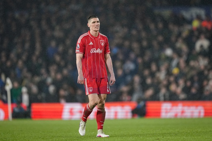Nikola Milenkovic of Nottingham Forest during the Premier League match Leeds United vs Nottingham Forest at Elland Road, Leeds, United Kingdom on 06 February 2026, Credit:Maynard Manyowa/News Images / Avalon