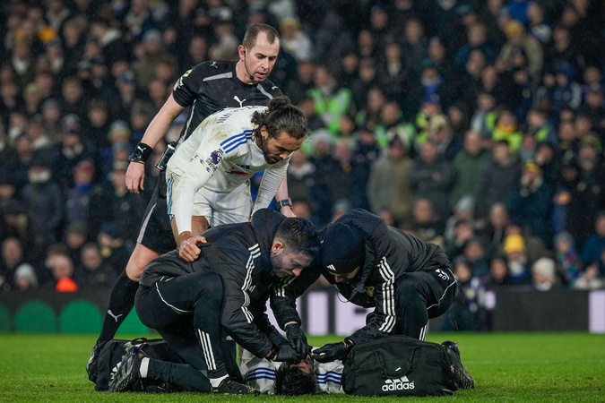 Ilia Gruev of Leeds United receives treatment during the Premier League match Leeds United vs Nottingham Forest at Elland Road, Leeds, United Kingdom on 06 February 2026, Credit:Maynard Manyowa/News Images / Avalon