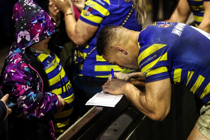 Albert Hopoate of Warrington Wolves signs a fans book during the Betfred Challenge Cup match Warrington Wolves vs Sheffield Eagles at The Halliwell Jones Stadium, Warrington, United Kingdom on 06 February 2026, Credit:Ae Cosgrove/News Images / Avalon