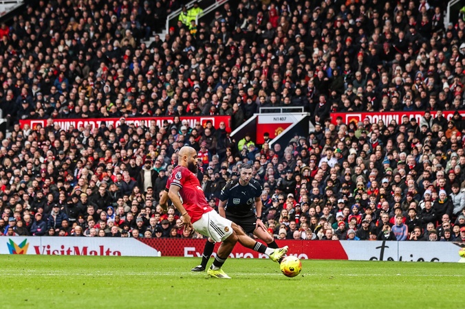 Bryan Mbeumo of Manchester United scores to make it 1-0 during the Premier League match Manchester United vs Tottenham Hotspur at Old Trafford, Manchester, United Kingdom on 07 February 2026, Credit:Ae Cosgrove/News Images / Avalon