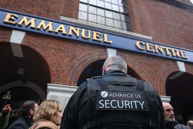 Advance UK security outside an event at the Emmanuel Centre in Westminster, London, UK, on 07 February 2026, as the party, backed by far-right activist Tommy Robinson, hold a policy launch event inside., Credit:Pete Speller / Avalon