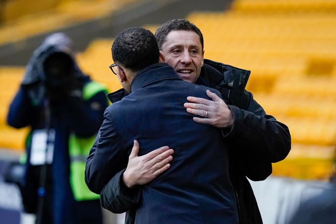 Liam Rosenior manager of Chelsea embraces former Manchester City midfielder Michael Brown during the Premier League match Wolverhampton Wanderers vs Chelsea at Molineux, Wolverhampton, United Kingdom on 07 February 2026, Credit:Maynard Manyowa/News Images / Avalon