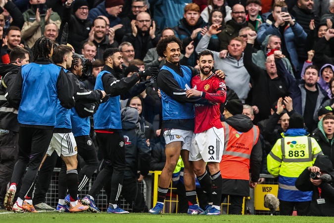Bruno Fernandes of Manchester United celebrates his goal to make it 2-0 during the Premier League match Manchester United vs Tottenham Hotspur at Old Trafford, Manchester, United Kingdom on 07 February 2026, Credit:Ae Cosgrove/News Images / Avalon