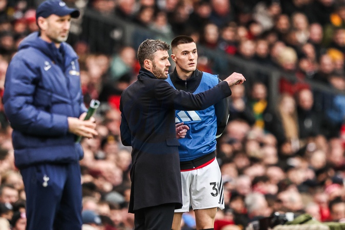 Michael Carrick manager of Manchester United gives instructions to Benjamin Sesko of Manchester United during the Premier League match Manchester United vs Tottenham Hotspur at Old Trafford, Manchester, United Kingdom on 07 February 2026, Credit:Ae Cosgrove/News Images / Avalon