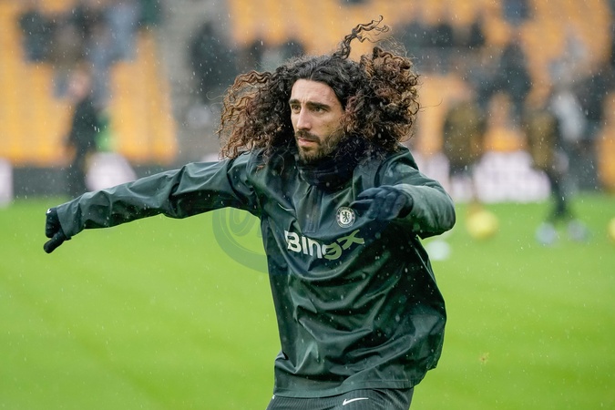 Marc Cucurella of Chelsea in the pregame warmup session during the Premier League match Wolverhampton Wanderers vs Chelsea at Molineux, Wolverhampton, United Kingdom on 07 February 2026, Credit:Maynard Manyowa/News Images / Avalon