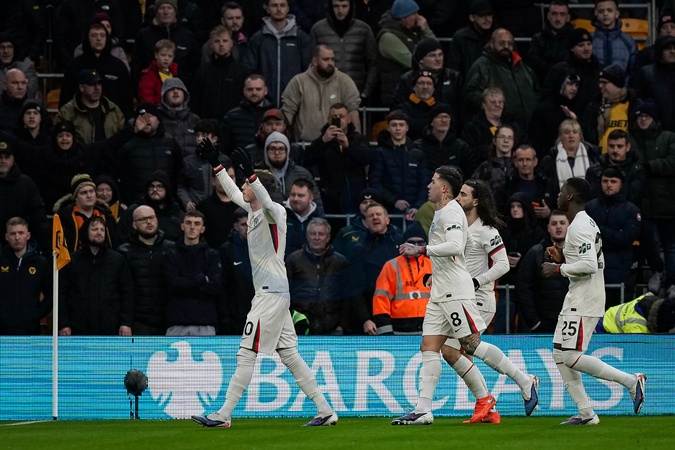Cole Palmer of Chelsea celebrates his goal to make it 0-1 during the Premier League match Wolverhampton Wanderers vs Chelsea at Molineux, Wolverhampton, United Kingdom on 07 February 2026, Credit:Maynard Manyowa/News Images / Avalon