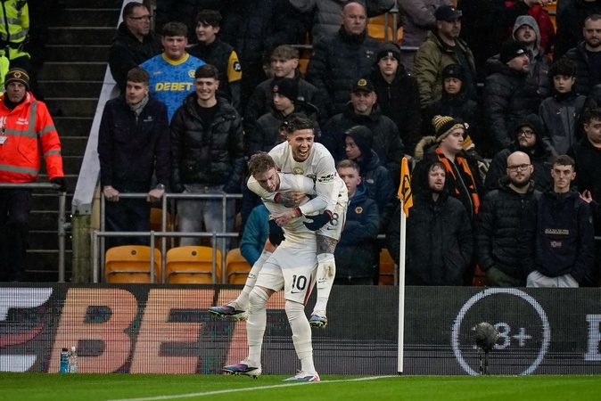 Cole Palmer of Chelsea celebrates his goal to make it 0-3 during the Premier League match Wolverhampton Wanderers vs Chelsea at Molineux, Wolverhampton, United Kingdom on 07 February 2026, Credit:Maynard Manyowa/News Images / Avalon