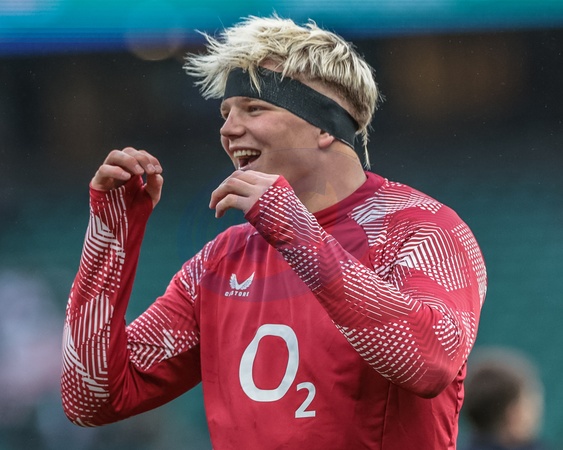 Henry Pollock of England in the pre-game warm up during the Guinness Six Nations 2026 match England vs Wales at Allianz Stadium, Twickenham, United Kingdom on 07 February 2026, Credit:Mark Cosgrove/News Images / Avalon
